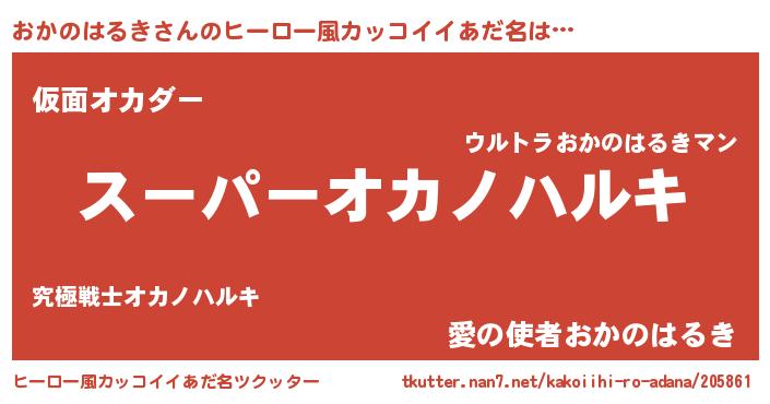 | 男性向けラノベタイトル風あだ名 | 『オカノハルキアートオンライン』 |