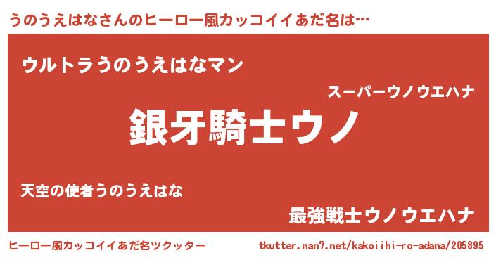 | 男性向けラノベタイトル風あだ名 | 『うのうえはなの嫁は女の子じゃないと思った?』 |