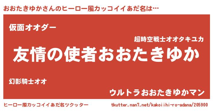 | 男性向けラノベタイトル風あだ名 | 『おまえをオタクにしてやるから、俺をおおたきゆかにしてくれ! 』 |