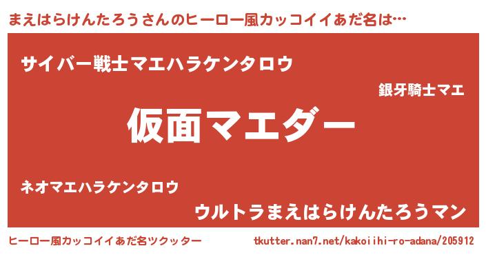 | 意味不明あだ名 | 『住所不定無職まえはらけんたろう(9歳)』 |