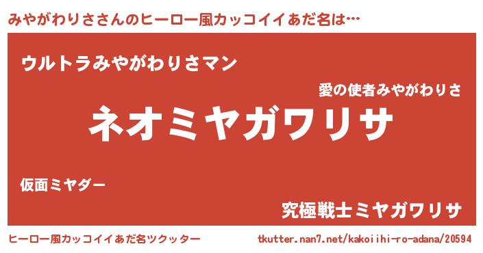 | 男性向けラノベタイトル風あだ名 | 『転生したらみやがわりさだった件』 |