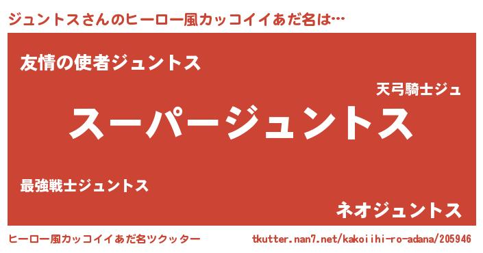 | 男性向けラノベタイトル風あだ名 | 『転生したらジュントスだった件』 |