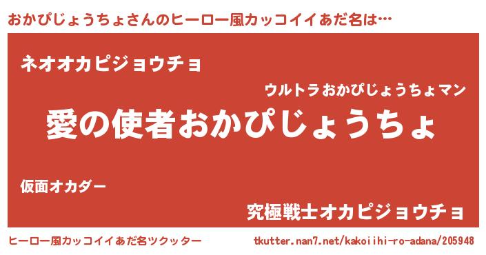 | 女子向けラノベタイトル風あだ名 | 『おかぴじょうちょ恋絵巻』 |