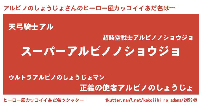 | 男性向けラノベタイトル風あだ名 | 『アルビノノショウジョアートオンライン』 |