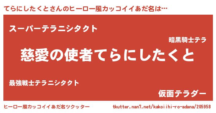 てらにしたくとさんのヒーロー風カッコイイあだ名をツクッター!