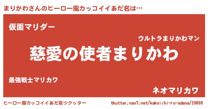| 男性向けラノベタイトル風あだ名 | 『転生したらまりかわだった件』 |