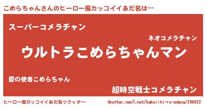 | 男性向けラノベタイトル風あだ名 | 『やはりこめらちゃんの青春ラブコメはまちがっている 』 |