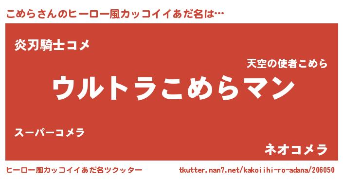 | ポケモン風あだ名 | 『コメラダネ』『ヒコメラ』 |