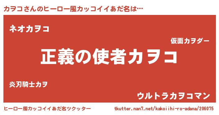 | 男性向けラノベタイトル風あだ名 | 『おまえをオタクにしてやるから、俺をカヲコにしてくれ! 』 |