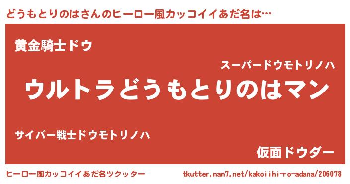| ポケモン風あだ名 | 『ドウモダネ』『ヒドウモトリノハ』 |