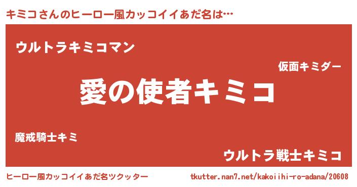 | 女子向けラノベタイトル風あだ名 | 『キミコ恋絵巻』『キミコの玉の輿計画!』 |