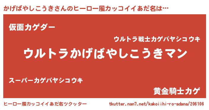 | 胡散臭い通販商品みたいなあだ名 | 『運命の人と巡り会える高級そうな壺…その名も「かげばやしこうき」』 |