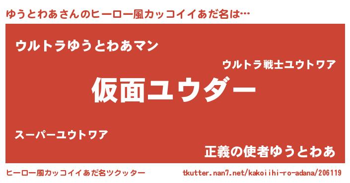 | 意味不明あだ名 | 『住所不定無職ゆうとわあ(9歳)』 |