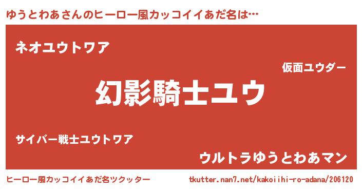 | ポケモン風あだ名 | 『ユウゴンZ』『ヒユウトワア』 |