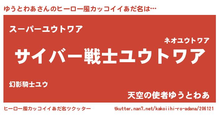 | 男性向けラノベタイトル風あだ名 | 『Re:ゆうとわあから始める異世界生活』 |