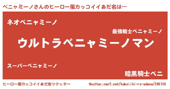 | 男性向けラノベタイトル風あだ名 | 『やはりベニャミーノの青春ラブコメはまちがっている 』 |