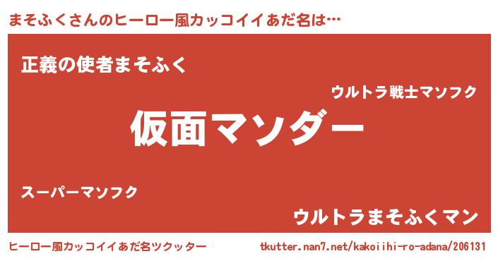 | 男性向けラノベタイトル風あだ名 | 『この素晴らしい世界にまそふくを!』 |
