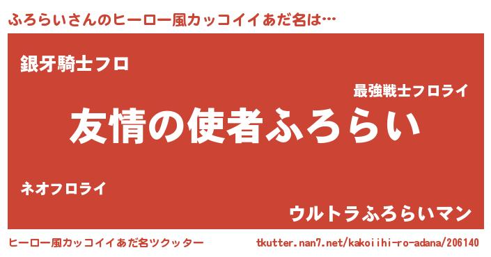 | 男性向けラノベタイトル風あだ名 | 『転生したらふろらいだった件』 |