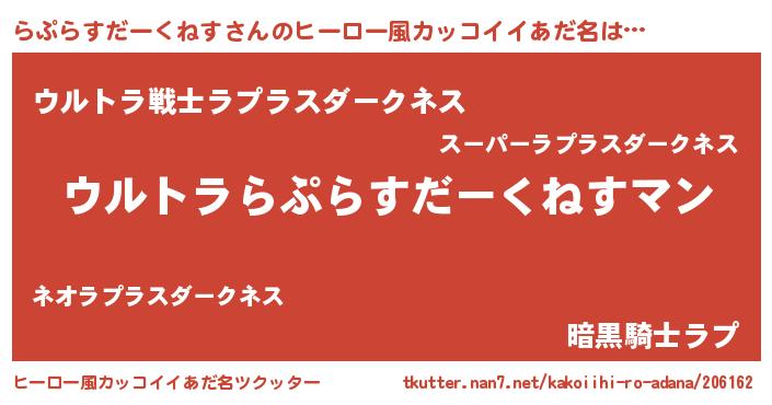 | 意味不明あだ名 | 『らぷらすだーくねすフォーエバー』 |