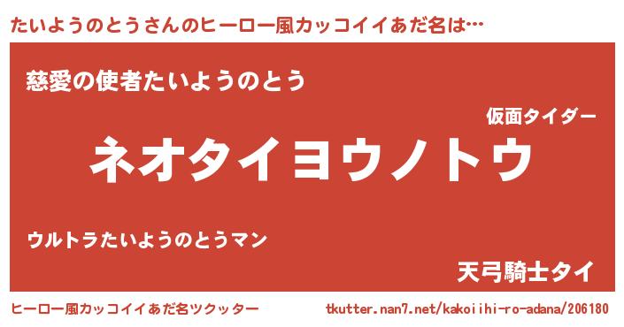 | 胡散臭い通販商品みたいなあだ名 | 『絶対に幸福をもたらす健康食品…その名も「たいようのとう」』 |