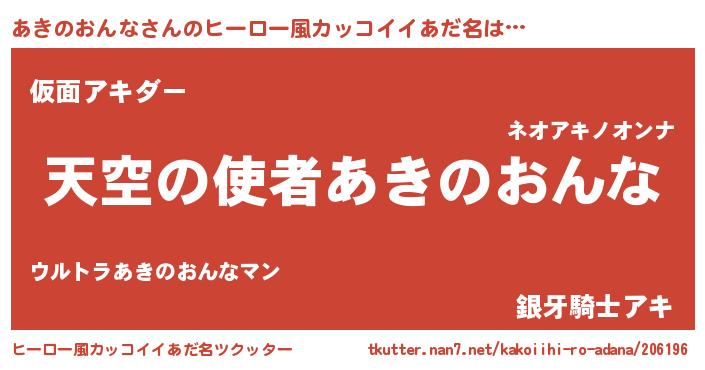 | 男性向けラノベタイトル風あだ名 | 『ノーゲーム・ノーアキノオンナ』 |