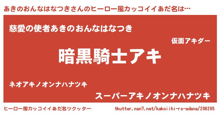| 意味不明あだ名 | 『とにかく怪しいあきのおんなはなつき』 |