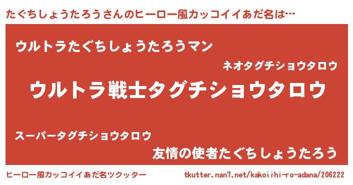 | 男性向けラノベタイトル風あだ名 | 『タグチショウタロウスレイヤー』 |