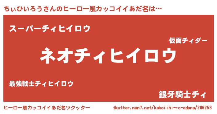 | 伝説のあだ名 | 『古文書に記された暗殺者ちぃひいろう』 |