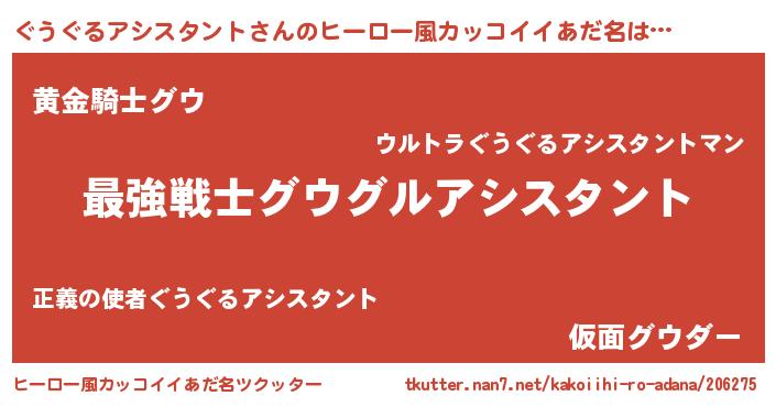 男性向けラノベタイトル風あだ名 | 『ぐうぐるアシスタント~年齢イコール彼女いない歴の魔法使い~』 |