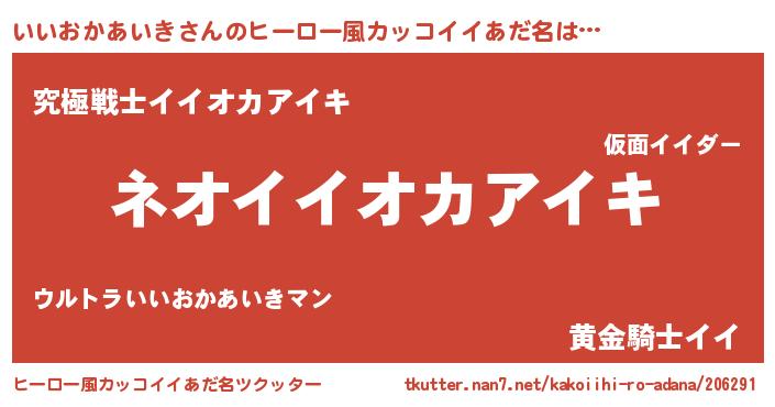 | 男性向けラノベタイトル風あだ名 | 『いいおかあいきという概念が存在しない退屈な世界 』 |
