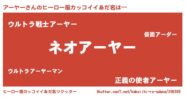 | 男性向けラノベタイトル風あだ名 | 『アーヤーという概念が存在しない退屈な世界 』 |