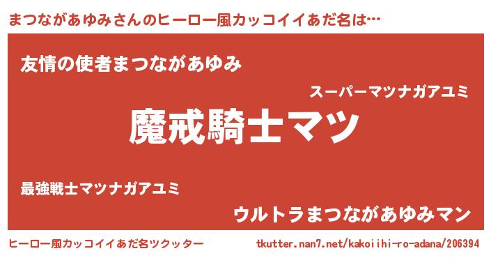 男性向けラノベタイトル風あだ名 | 『ダンジョンにまつながあゆみを求めるのは間違っているだろうか』 |