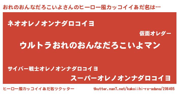 ファンタジー風あだ名 | 『エターナルオレノオンナダロコイヨー』 |