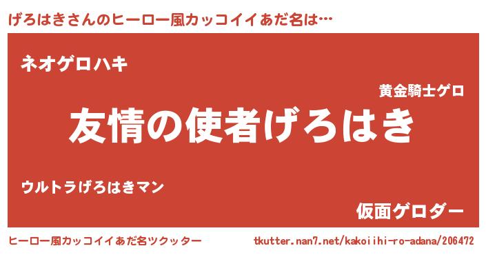 | ヘコむあだ名 | 『げろはき(小並感)』『げろぷりん』 |