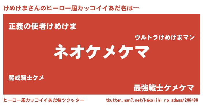 | ヘコむあだ名 | 『けめけま(震え声)』『酢こんぶ』 |