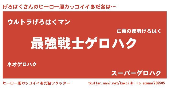 | ファンタジー風あだ名 | 『ゼゲロトゥ』『エターナルゲロハクー』 |