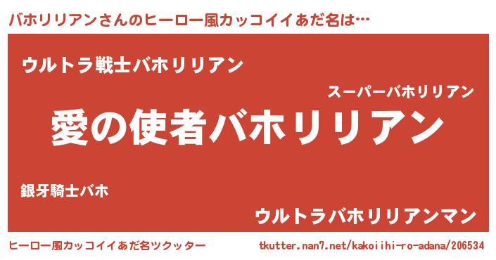 | 男性向けラノベタイトル風あだ名 | 『転生したらバホリリアンだった件』 |