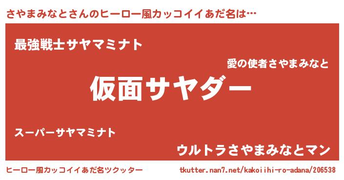 | 恥ずかしいあだ名 | 『サヤマミナトデラックス』『さやっちょ』 |