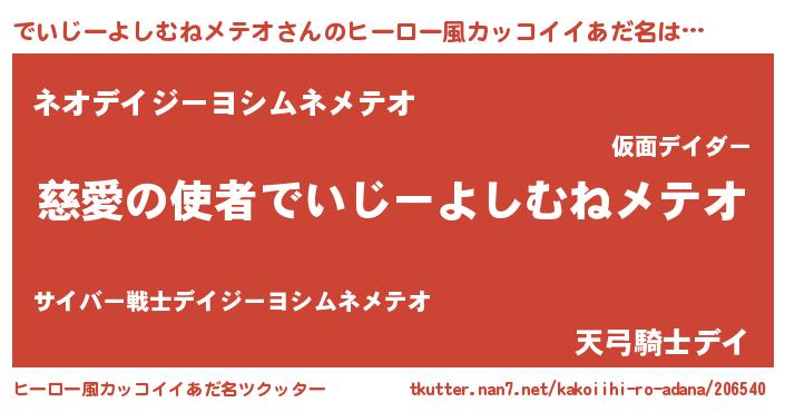 | ヘコむあだ名 | 『でいじーよしむねメテオ(笑)』『でいっぺ』 |