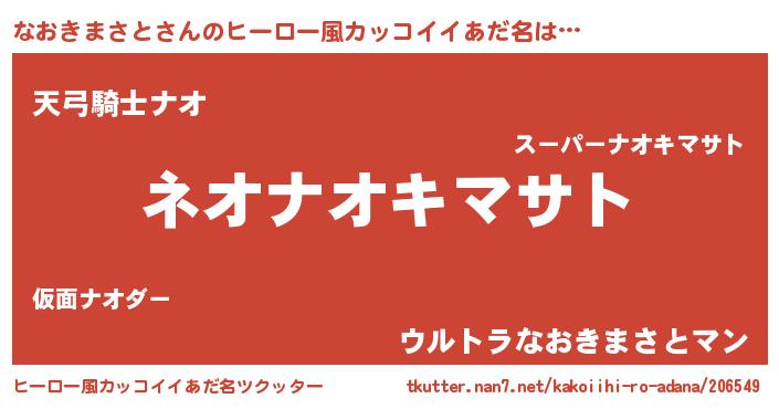 | 男性向けラノベタイトル風あだ名 | 『誰もが恐れるあのなおきまさとが、ぼくの専属メイドになるようです。』 |