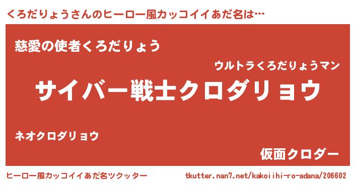 男性向けラノベタイトル風あだ名 | 『魔法科高校のくろだりょう』 |
