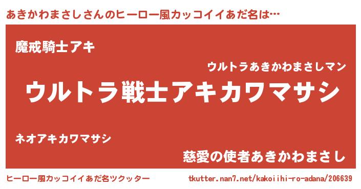 | 男性向けラノベタイトル風あだ名 | 『アキカワマサシスレイヤー』 |