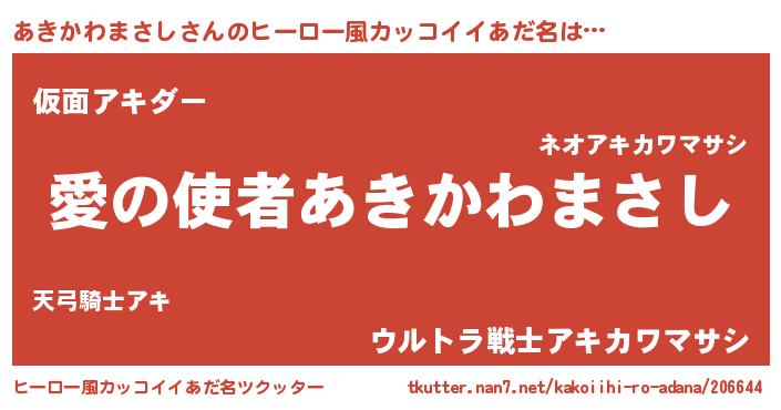 | 女子向けラノベタイトル風あだ名 | 『あきかわまさし恋絵巻』 |