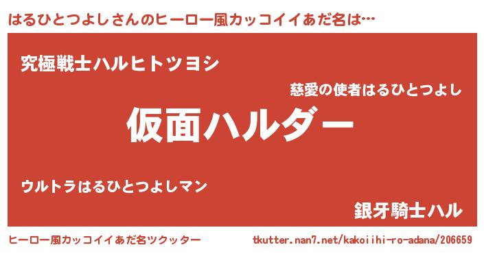 | 男性向けラノベタイトル風あだ名 | 『魔弾の王とはるひとつよし』 |