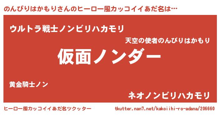 | 意味不明あだ名 | 『住所不定無職のんびりはかもり(9歳)』 |