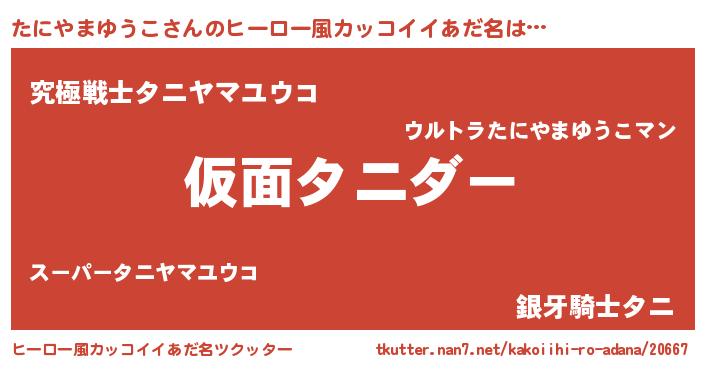 | 意味不明あだ名 | 『住所不定無職たにやまゆうこ(1歳)』 |