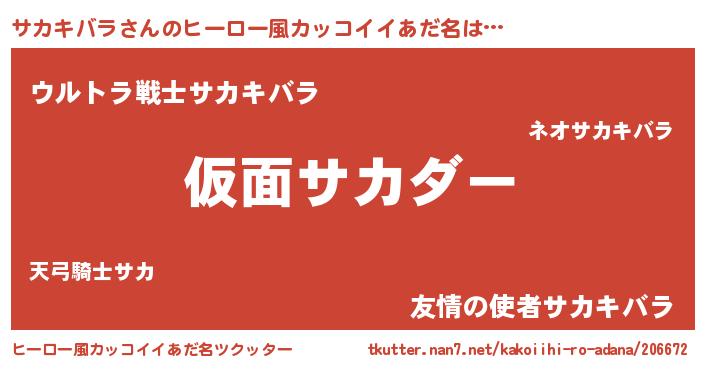 | 男性向けラノベタイトル風あだ名 | 『この素晴らしい世界にサカキバラを!』 |