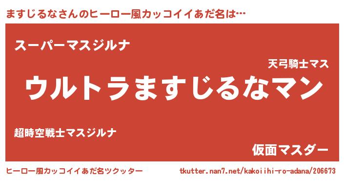 ますじるなさんのヒーロー風カッコイイあだ名をツクッター!