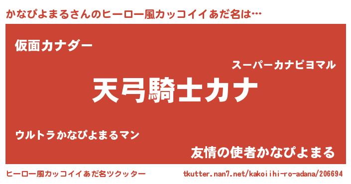| 男性向けラノベタイトル風あだ名 | 『かなぴよまるの嫁は女の子じゃないと思った?』 |