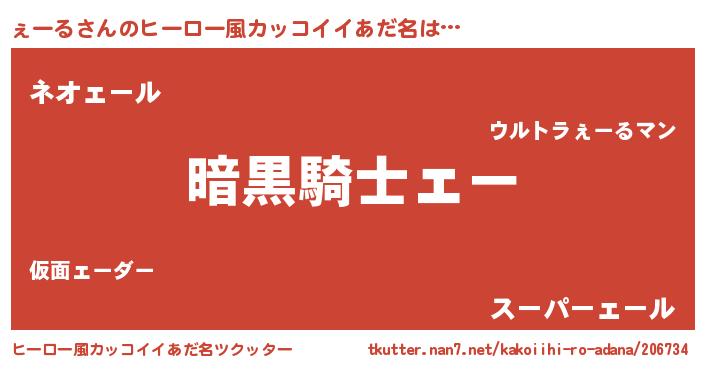 | 胡散臭い通販商品みたいなあだ名 | 『信頼と実績のサプリメント…その名も「ぇーる」』 |